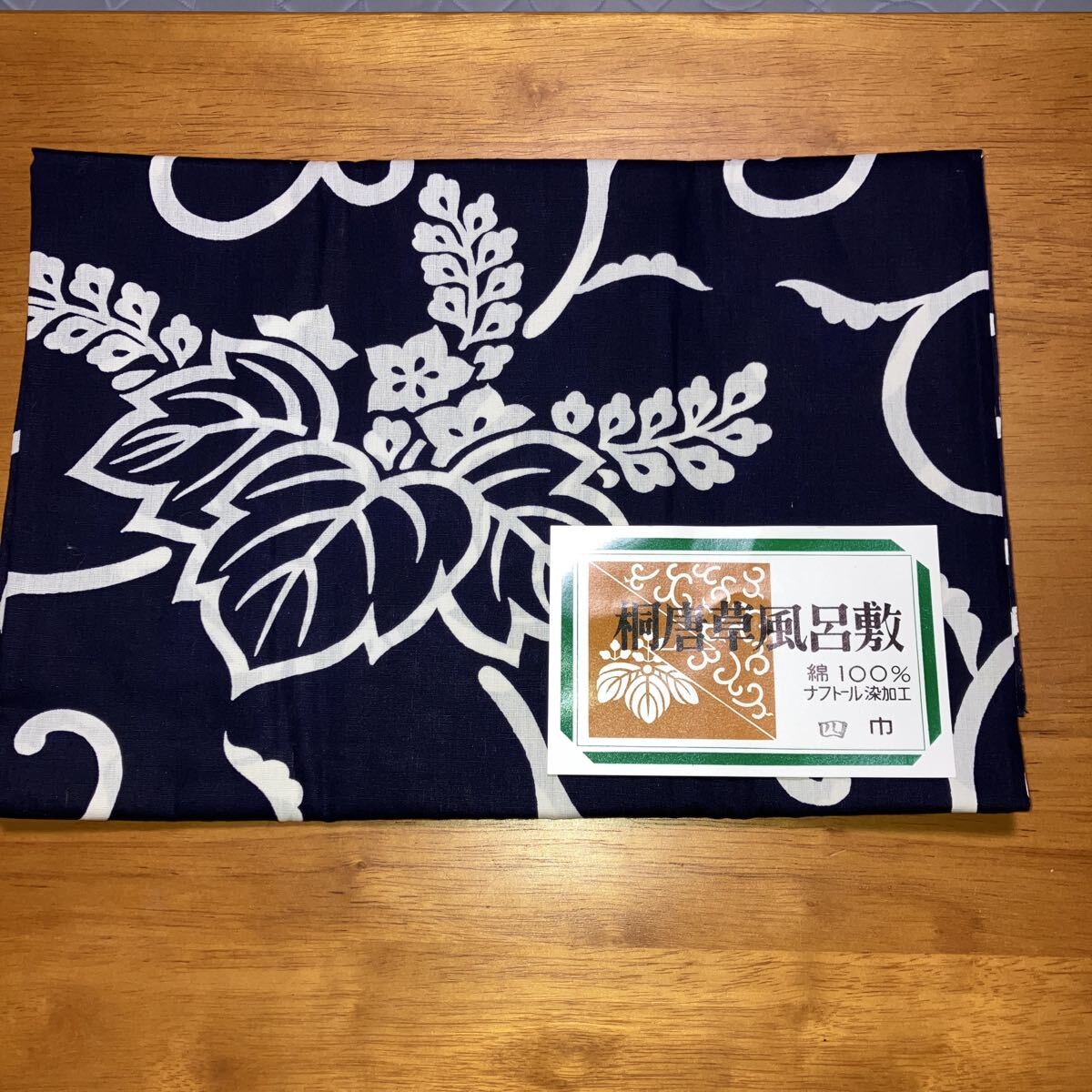 - 桐唐草模様 大風呂敷(四巾) 約124 x 124㎝・綿100% ナフトール染加工