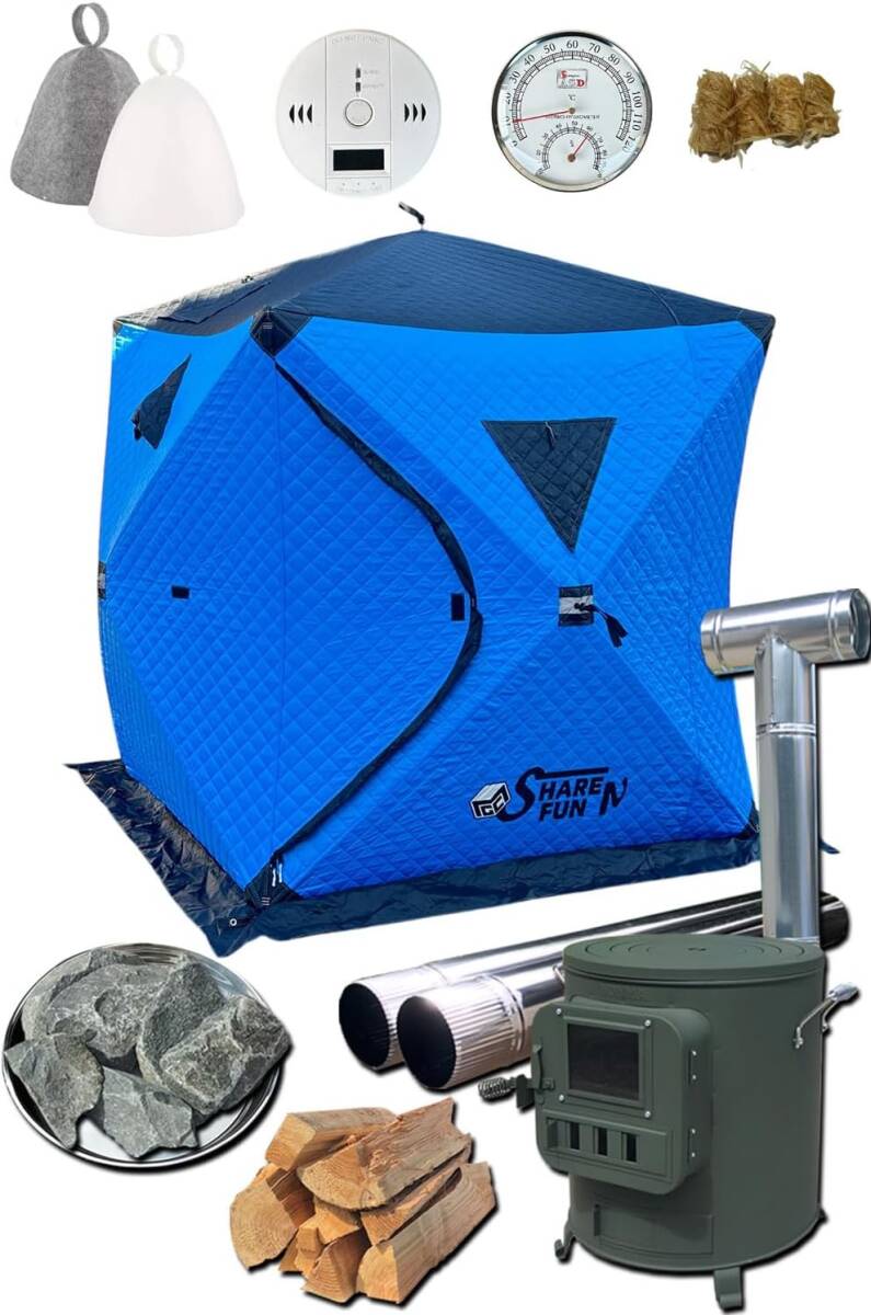 - テントサウナ セット サ活始めるセット 4人用 サウナ ロウリュ 薪ストーブ サウナストーン すぐ使える 幅230m×奥行230cm×高さ200cm