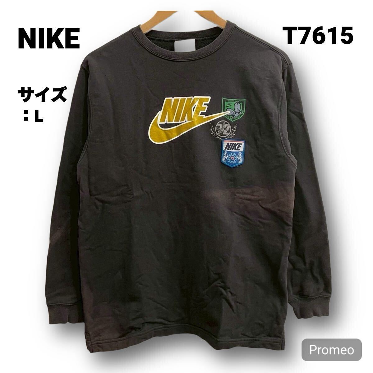 - 【T7615】 NIKE ナイキ スウェット トレーナー サイズL ブラック 黒 フロントデザイン プリントデザイン メンズ トップス 最落なし 古着