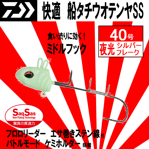> ■1555円~【快適船タチウオテンヤSS MH 夜光シルバーフレーク】40号 送料激安200円 ミドルフック 大阪湾で定番のグローはマストアイテム!