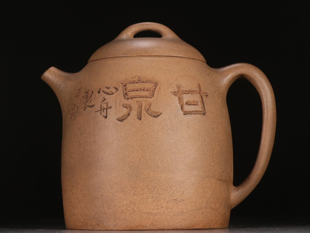 - ▽鴻▽清時代 急須 何心舟製款 漢詩紋紫砂急須 煎茶道具 茶壷 時代物 中国古美術 骨董品