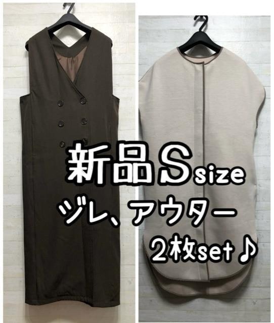 - 新品☆S♪ジレ2枚セット♪ベストコート♪ノースリーブアウター☆Q489