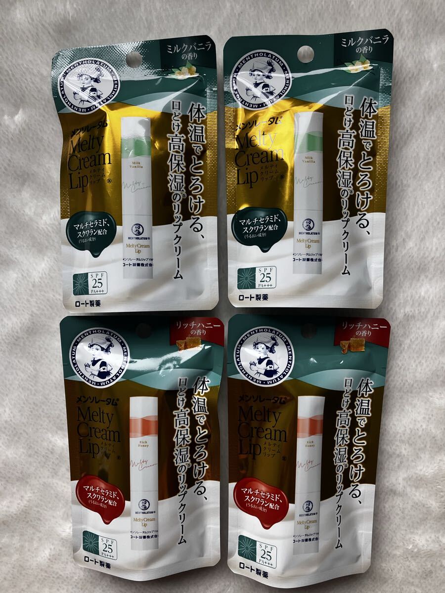 - 購入1週間以内 送料180円 メンソレータム 口どけ高保湿 ロート製薬 ミルクバニラ リッチハニー 4本 リップクリーム