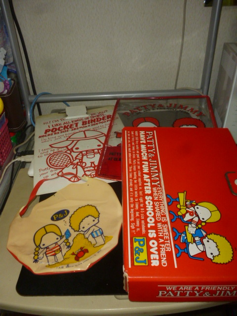 - 昭和レトロ 中古 サンリオ1976年製 パティ&ジミー 4種セット お道具箱 ファイル入れ ビニール製ミニバッグ ジャンク品