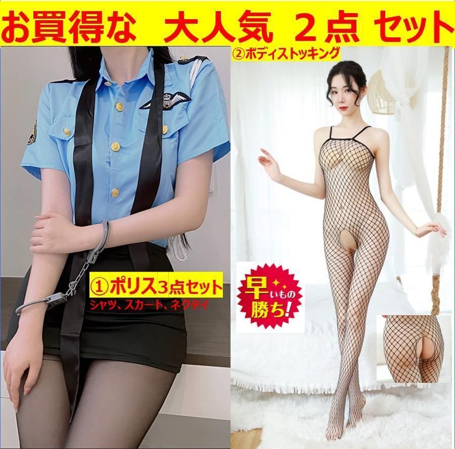 - J5お買得な2点セット ハロウィン コスプレ ポリス 婦人警官 ミニスカセクシー