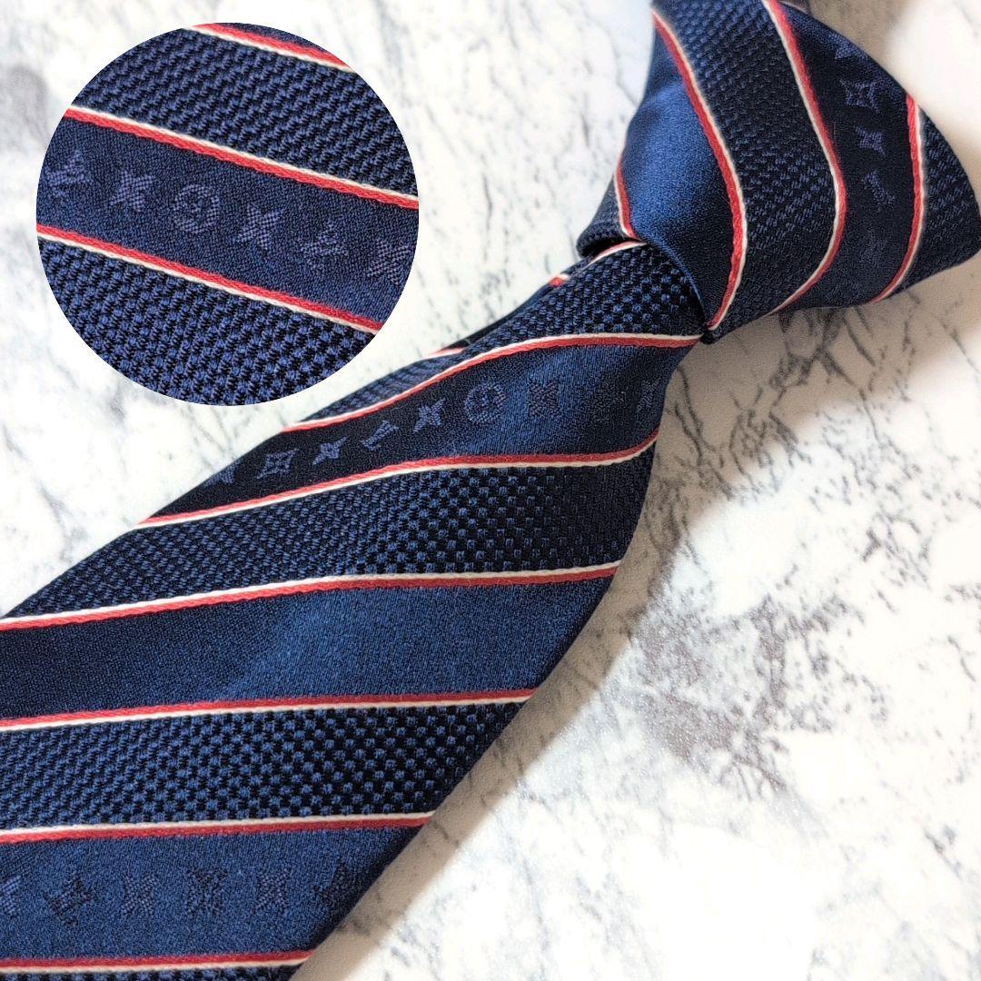 - 【極美品】Louis Vuitton ルイヴィトン ネクタイ モノグラム ストライプ ジャガード