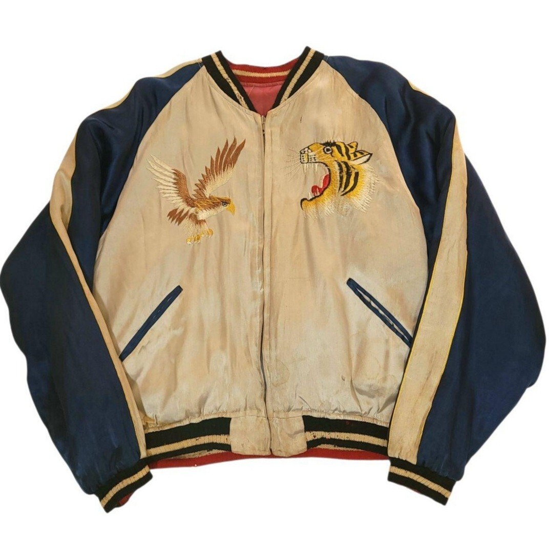 - 50's ~ Vintage ヴィンテージ スーベニア ジャケット スカジャン リバーシブル 50s 刺繍 USED 古着 虎 鷹 鷲 タイガー イーグル 50年代