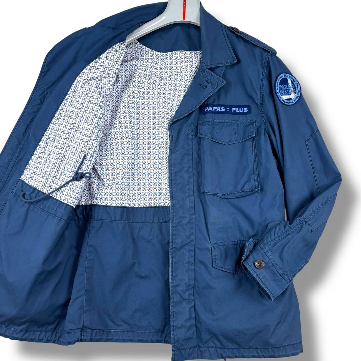 > 1円 良品 XL.LL~XXL.2XL パパスプラス PAPAS PLUS フィールドジャケット M-65 ロゴワッペン ダブルジップ 日本製 メンズ ブルー系 L