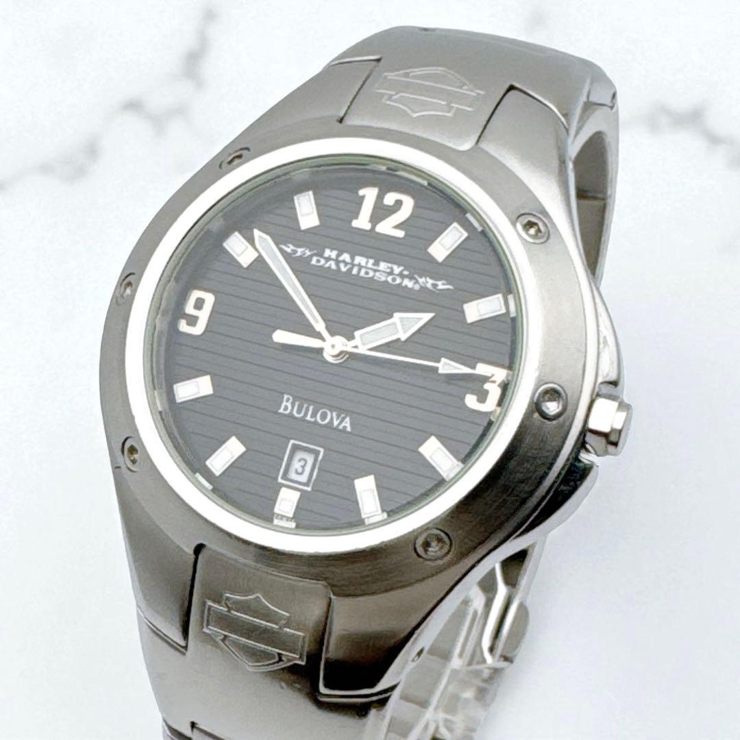 - 稼働 BULOVA HARLEY-DAVIDSON ブローバ ハーレーダビッドソン コラボモデル 腕時計 ブラック文字盤 デイト メンズウォッチ