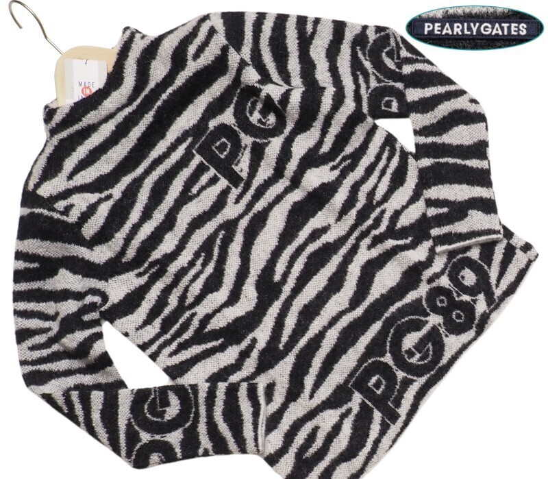 - 新品正規36300円 PEARLY GATES パーリーゲイツ モヘア プルオーバー ゼブラ柄 モックネックニット レディース0(S)灰黒(031) 1270008