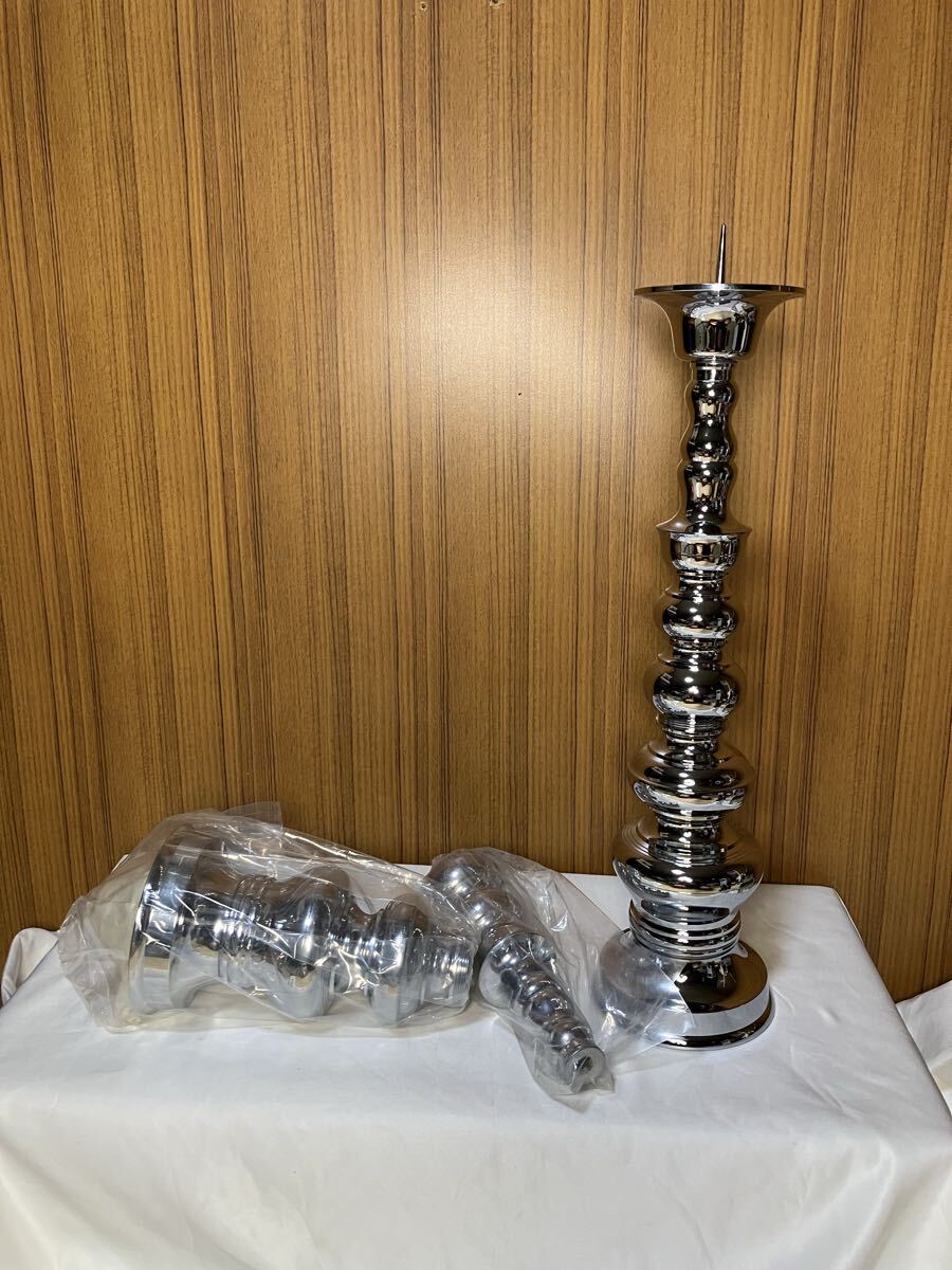 - 未使用大型【燭台一対】仏具 蝋燭立て ロウソク立て ろうそく立て 寺院仏具 寺院 寺 僧侶 法衣 袈裟 荘厳 仏教 仏 佛 仏具