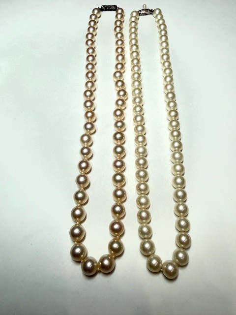 > ●H7-10-36 アコヤ本真珠ネックレス2本セット★全長38cm2点★珠直径6.78/7.21mm★重さ26.2/28.7g