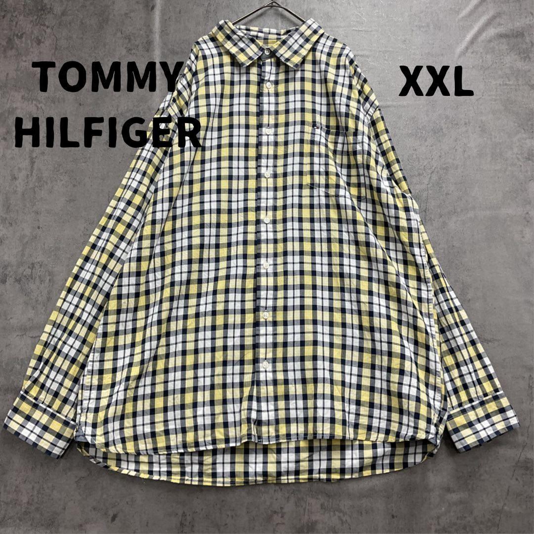 > トミーヒルフィガー 長袖シャツ チェック柄 黄×黒×白 XXL【6132】