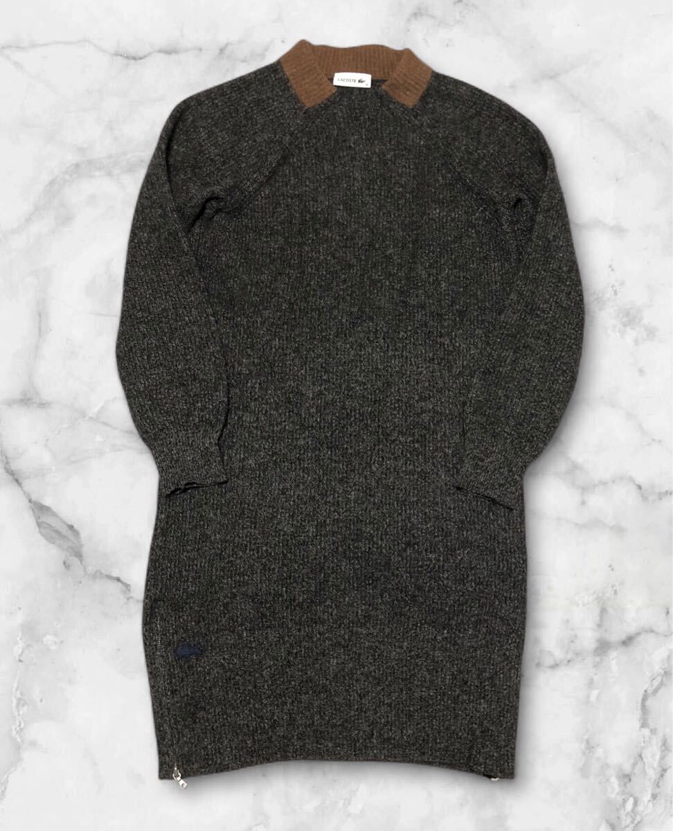 - ■LACOSTE ラコステ■ワニワッペン ウール ニット ワンピース ダークグレー×ブラウン 40