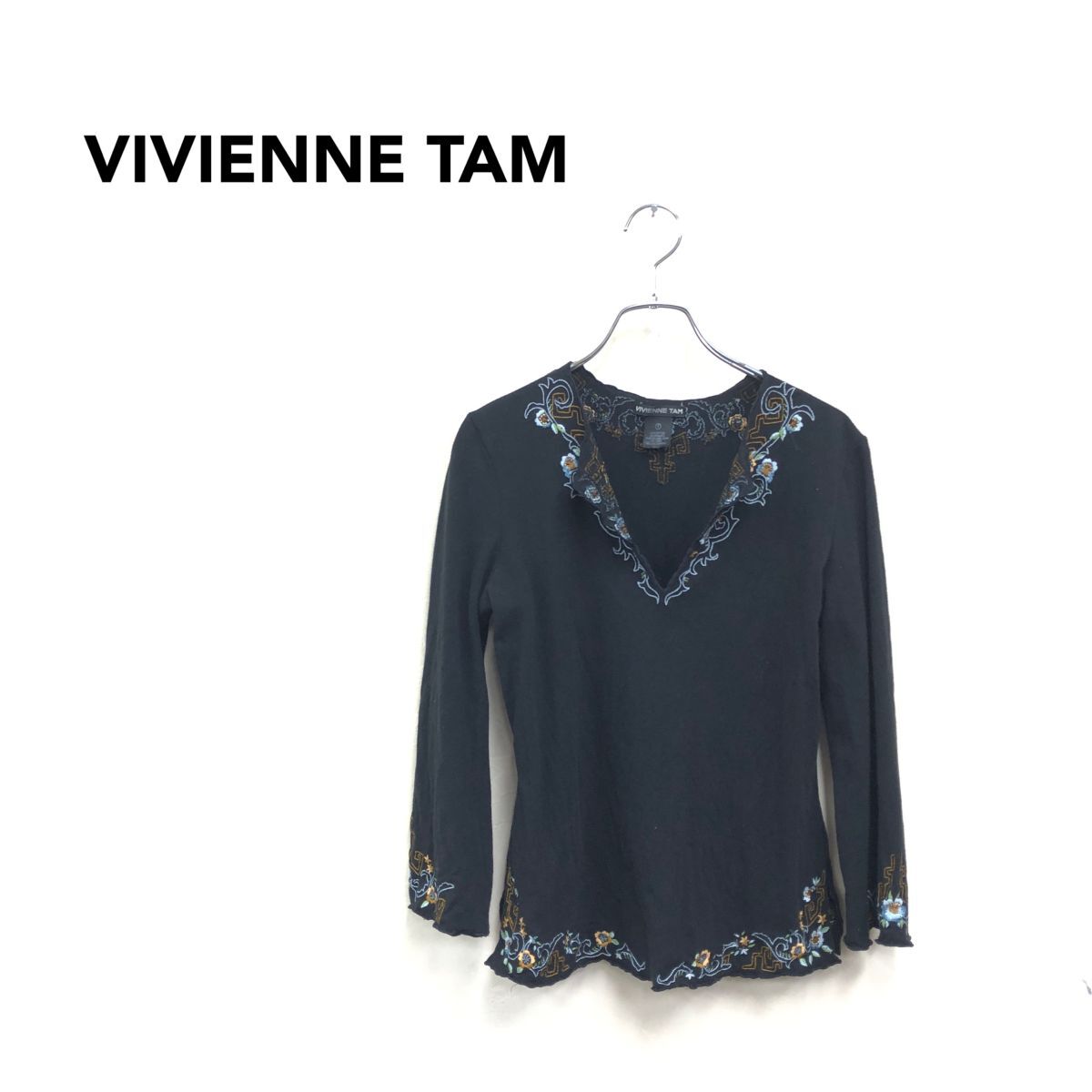 > 2O1586-U◆VIVIENN TAMヴィヴィアンタム Vネック刺繍ブラウス カットソー スキッパー 長袖 花柄◆size1 黒 ブラック