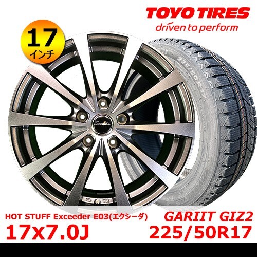> 送料無料 新品 タイヤ& ホイール 【HOT STUFF Exceeder E03 17×7.0J +38 114.3x5】【トーヨー OBSERVE GIZ2 225/50R17】EHOT-118