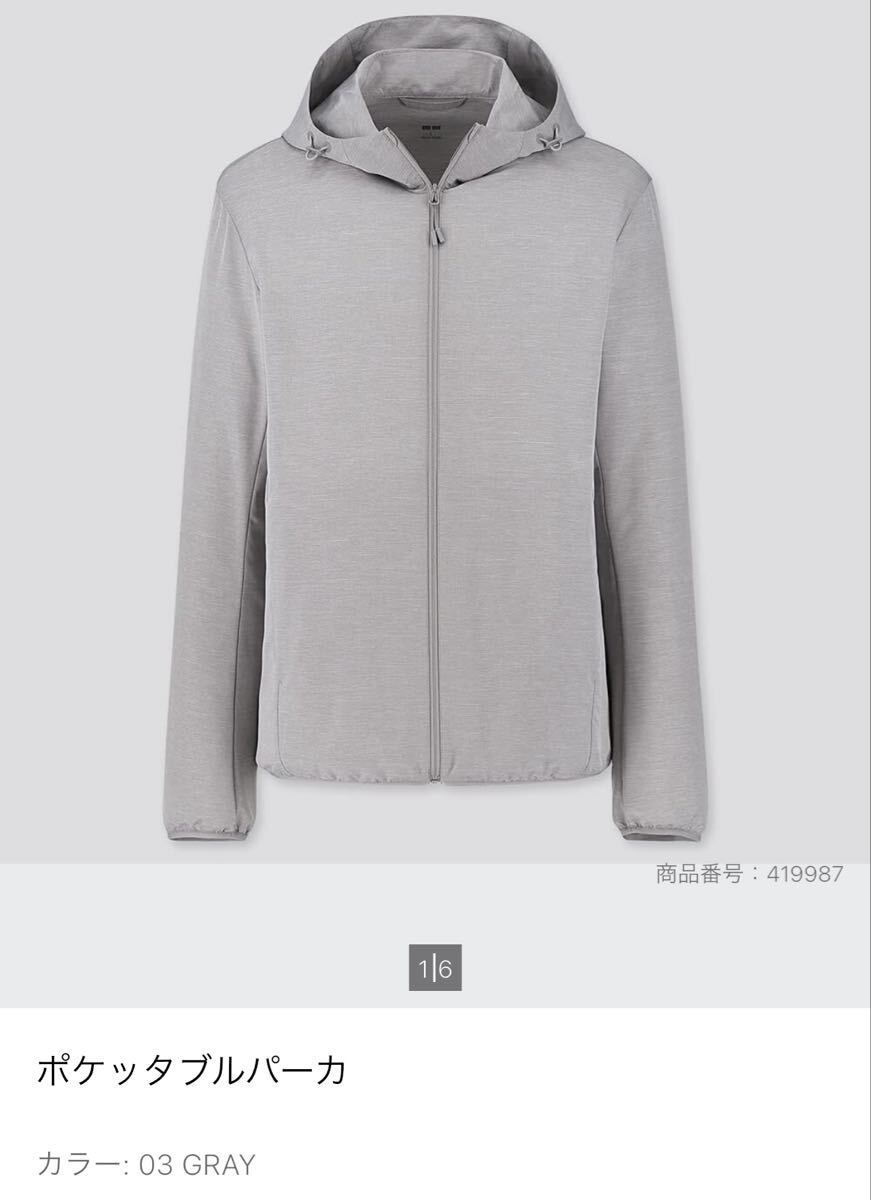 > ★ユニクロ ポケッタブルパーカ UNIQLO 長袖 ジップアップ グレー パーカー XL