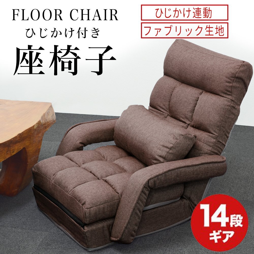 > 座椅子 リクライニング 肘掛け オットマン付き 14段ギア 1人掛け ハイバック ソファ コンパクト フロアソファ ブラウン