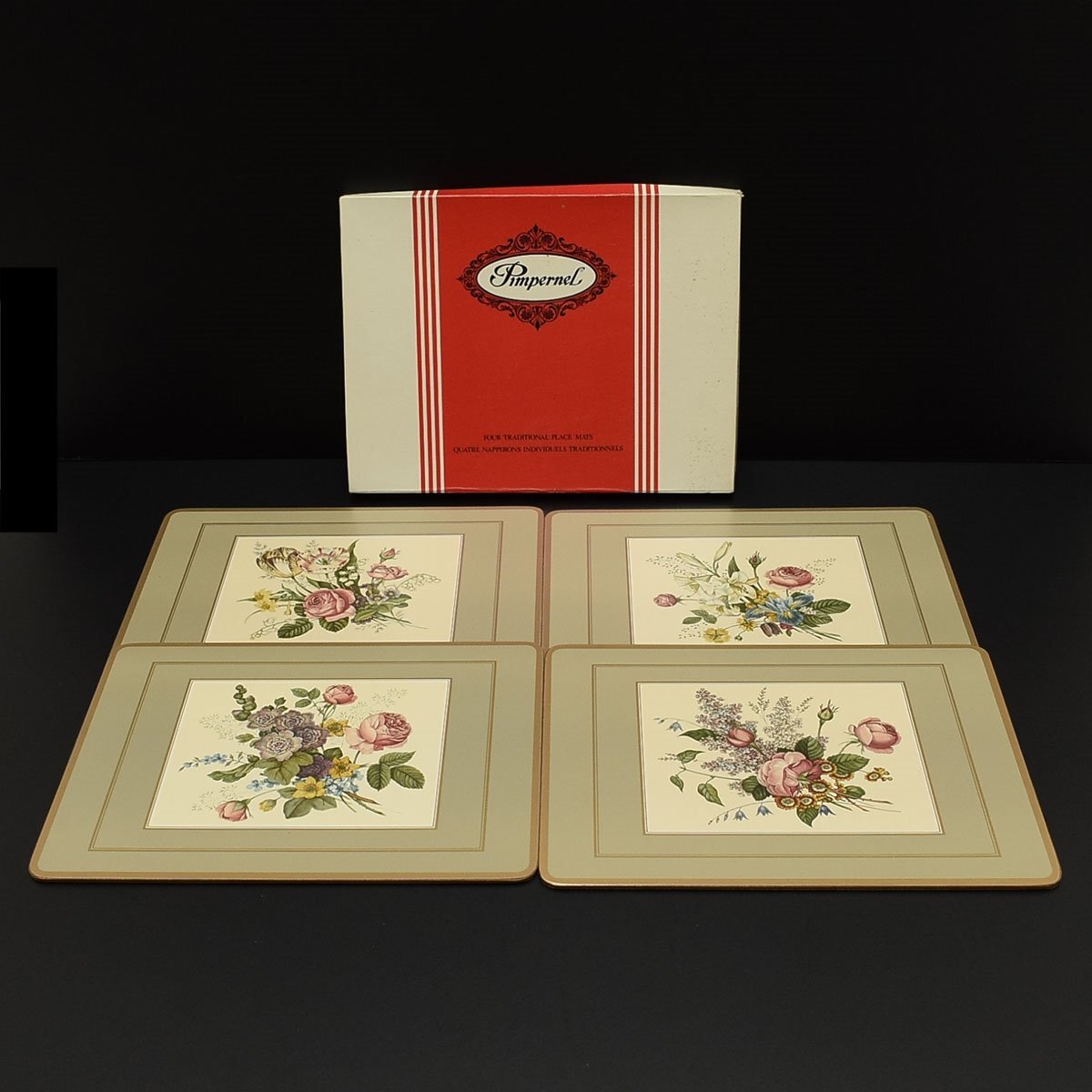 - ◎566283 未使用品 PIMPERNEL ピンパーネル イギリス製 プレイスマット 4枚 テーブルマット 柄違い 箱入 フローラル スプレー ミスト