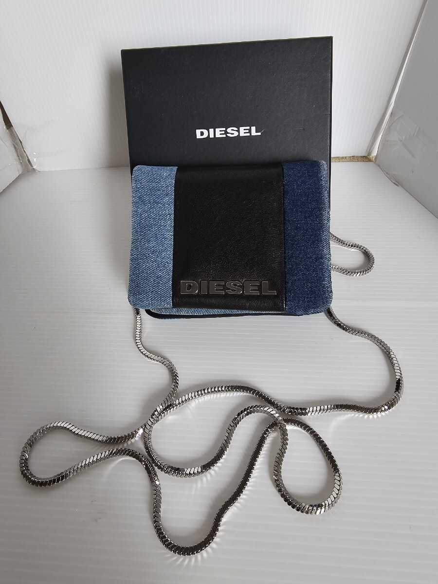 - 希少レアDIESEL ディーゼル 二つ折り財布肩掛け(外せます)財布 箱有りデニムレザー
