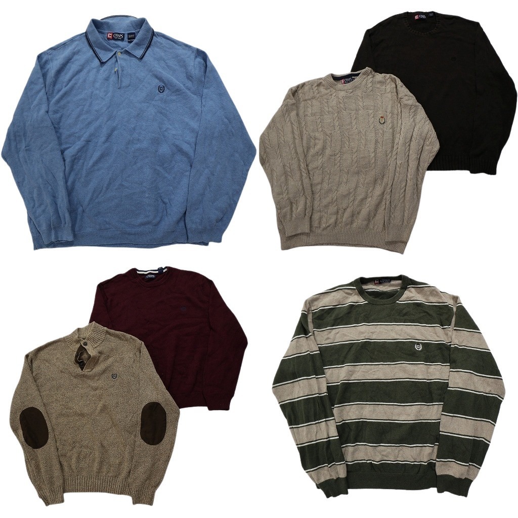 > 古着卸 まとめ売り チャップス CHAPS セーター 6枚セット (メンズ 2XL ) ボーダー エルボーパッチ ケーブル編み NC2812 1円スタート