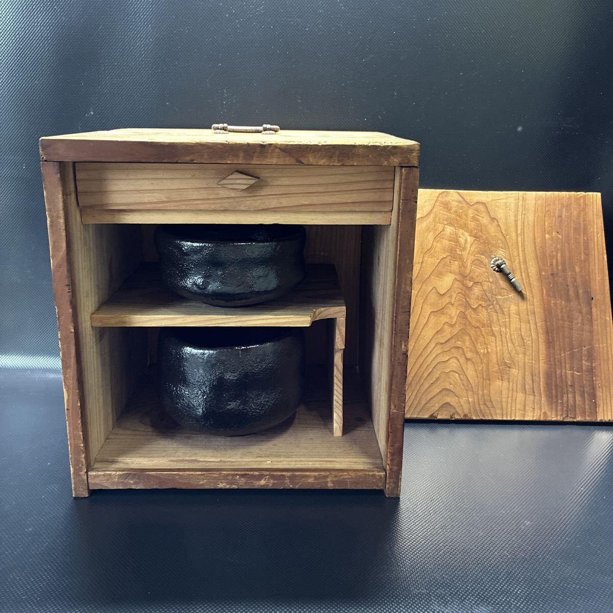 - 茶道具 茶碗 木箱 黒楽茶碗 黒色茶碗 2客 茶道具セット 短冊箱