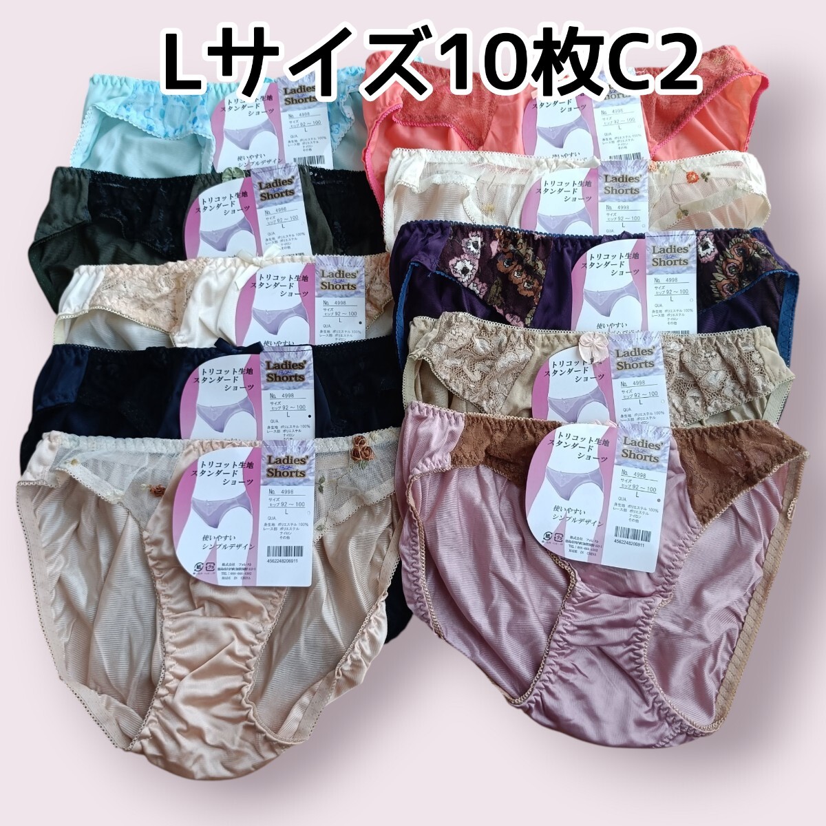 > Lサイズ ショーツ10枚セットC2 レディース パンツ ヒップ92cm〜100cm 新品未使用 トリコットショーツ