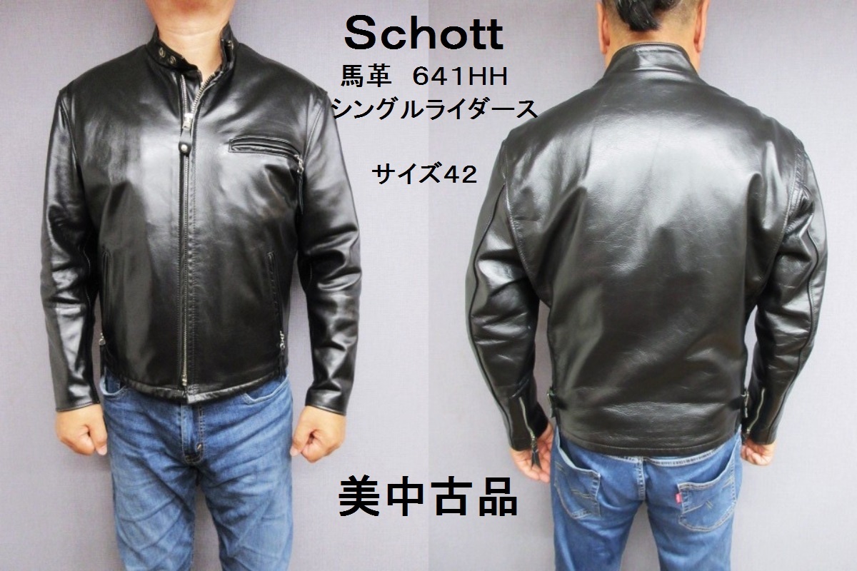 > 42 良品 ショット 641HH 馬革 シングル ライダース レザー ジャケット LL サイズ相当 大きめサイズ 革ジャン Schott XL ホースハイド
