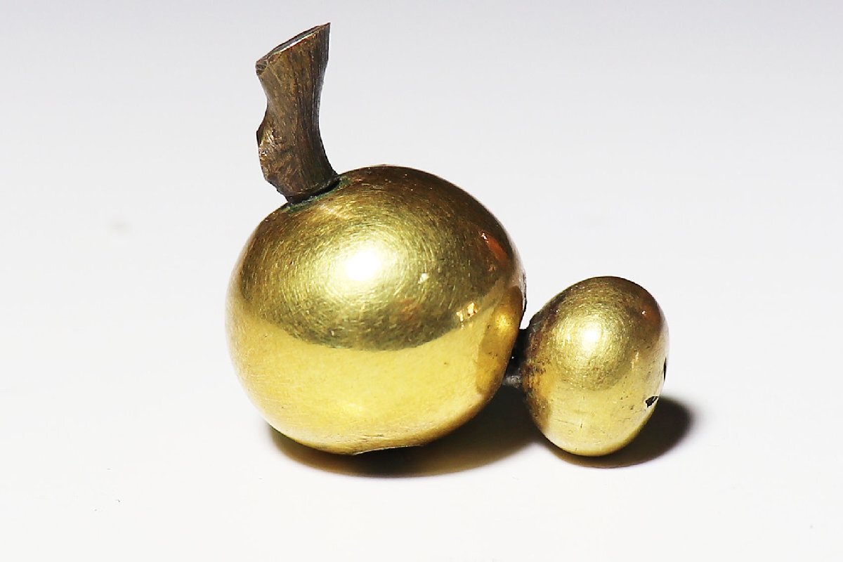 - 【桃】提げ物:金工黄銅彫成物緒締め玉