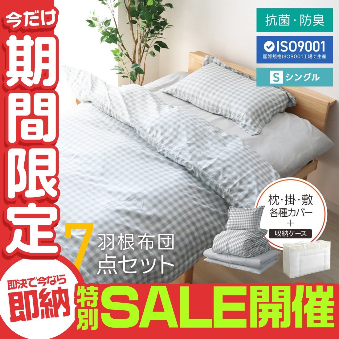 > 【数量限定セール】布団セット シングル 7点 暖かい 洗える 安い 羽根布団 枕 掛布団 敷布団 カバー 来客用 抗菌 防臭 組布団 布団収納袋