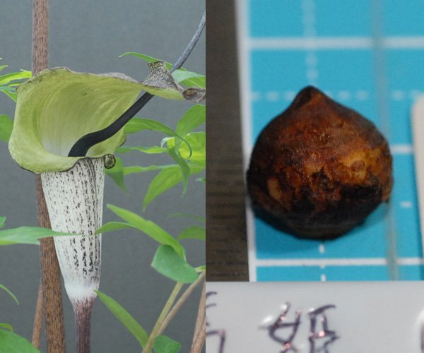 - ウラシマソウ atuhi 静岡産 中緑花 『篤姫(あつひめ)』 小球 1球 (B) 【外れたて小球 (大きめ)】(浦島草、山野草、テンナンショウ)