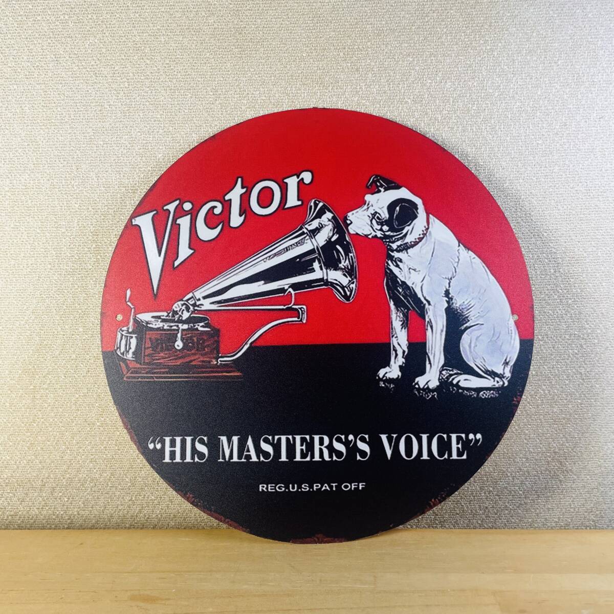 > Victor ビクター His Master's Voice アルミ製 プレート 看板 壁掛け インテリア HMV ニッパー 犬 RCAレコード 蓄音機 レトロ ディスプレイ