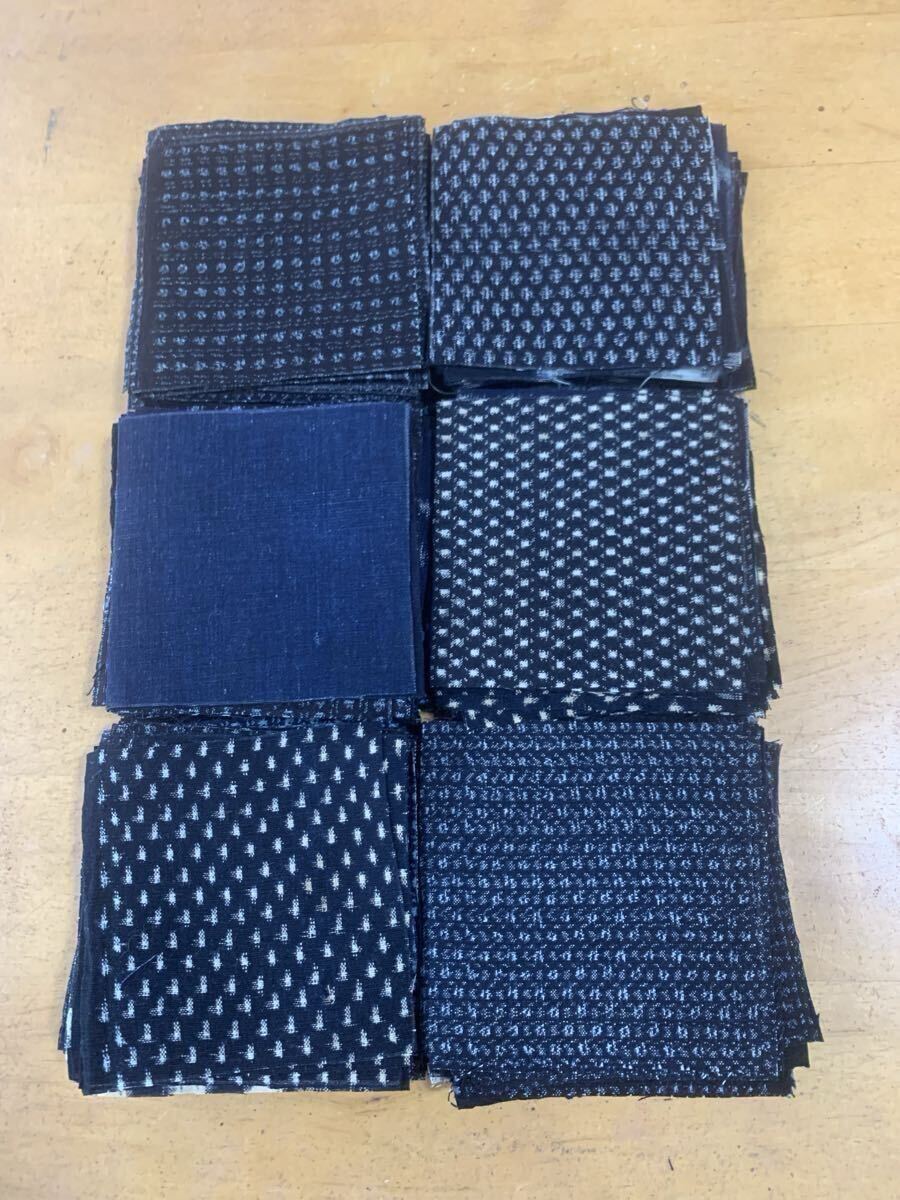 - ☆古布着物リメイク☆書生絣.久留米絣他藍染絣でパッチワークカットクロス.10cmx10cmの正方形300枚と型染3枚