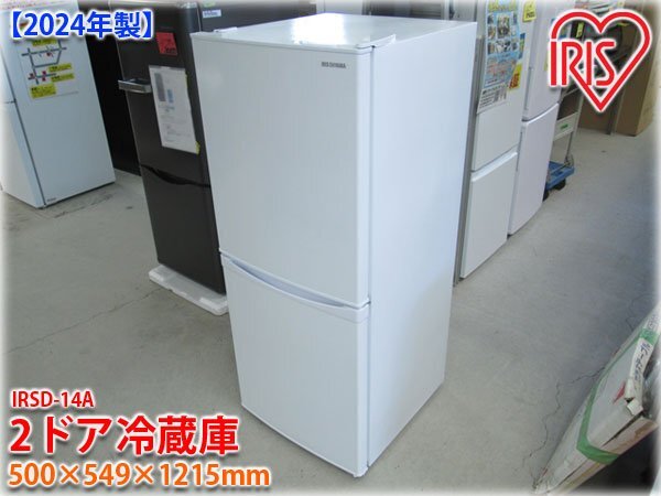 - 【2024年製】アイリスオーヤマ 2ドア冷蔵庫 IRSD-14A-W 500x549x1215mm 142L(冷凍52L/冷蔵90L) 右開き 【長野発】