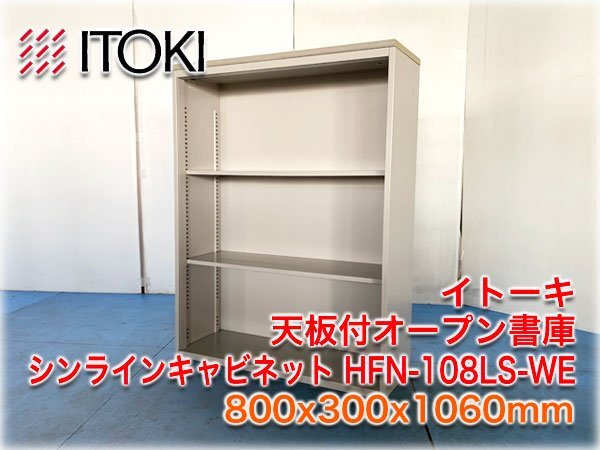 > イトーキ 天板付オープン書庫 シンラインキャビネット HFN-108LS-WE 800x300x1060mm ホワイトグレー色 A4縦ファイル対応 【長野発】