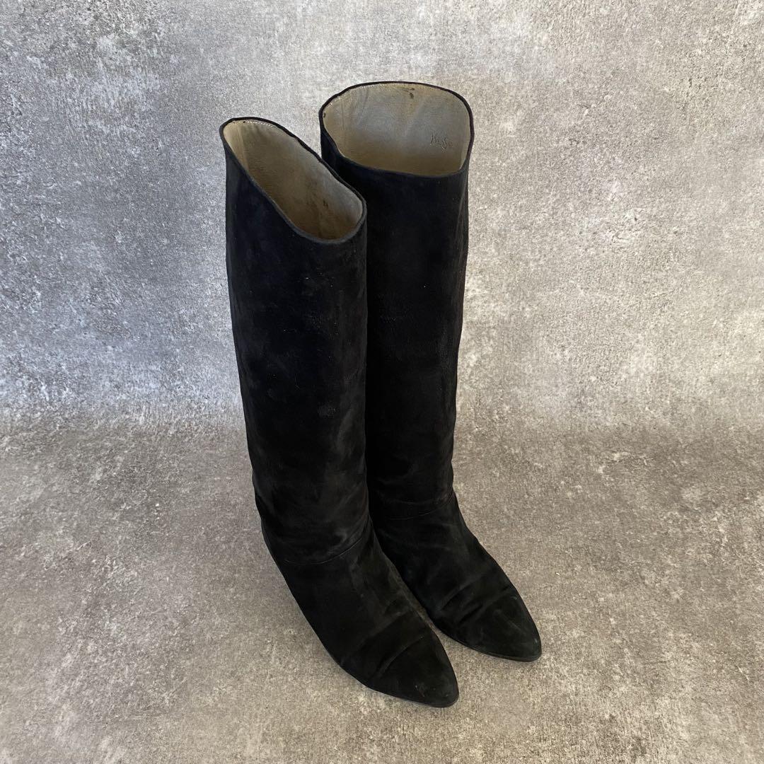 - イブサンローラン ロングブーツ スエード レザー ブラック 23.5cm
