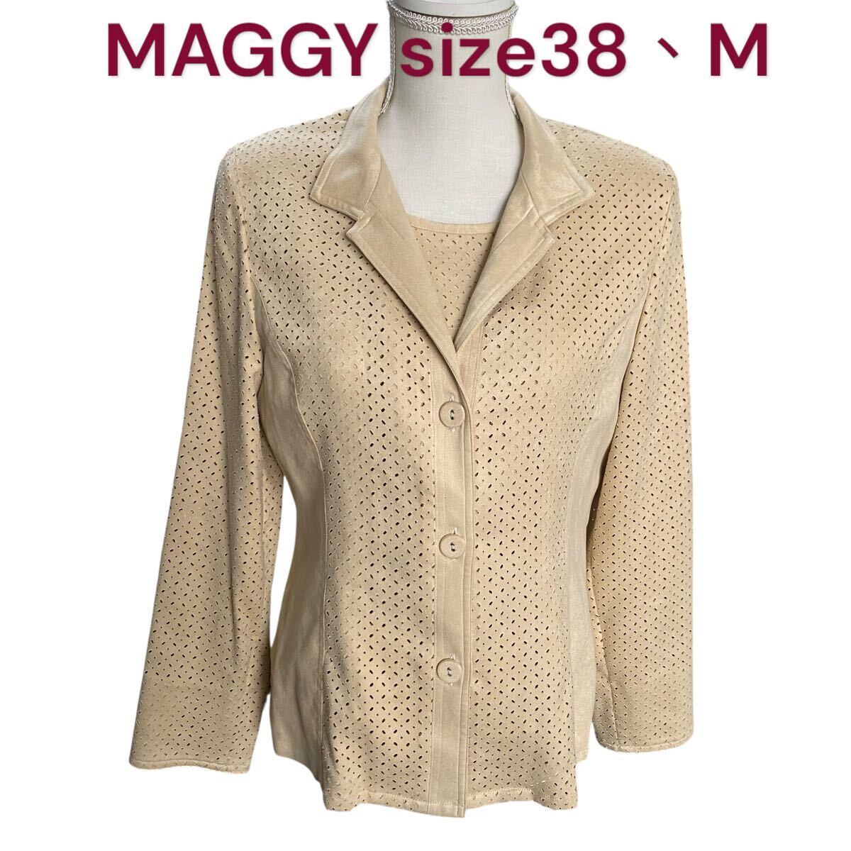 - 美品 マギー スエード風 アンサンブル ジャケット カットソー 38、M、9号 MAGGY ベージュ
