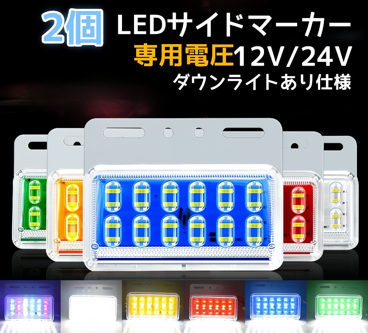 > 12V 24V LEDサイドマーカー 角マーカーランプ バスマーカー 車幅灯 角型 路肩灯 トラック 青 ブルー 赤 レッド イエロー 黄 緑 グリーン