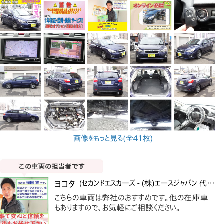 > 【諸費用コミ】:画像多数@札幌市【整備・保証有】 平成24年 インプレッサスポーツ 1.6 i-L 4WD 事故無 保証1年 社外ナビ