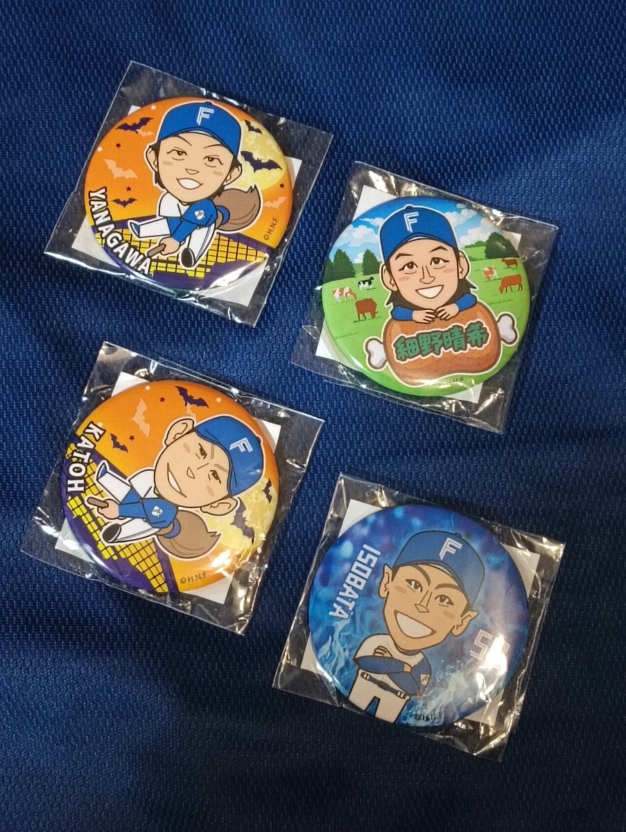 - 日本ハム 缶バッジ4点セット 柳川、加藤、五十幡亮汰、細野/ ファイターズ