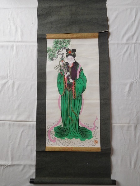 - 【模写】掛け軸 陽泉?人物画 天照大神 美人画 落款 紙本肉筆 人が描いたもの 詳細不明