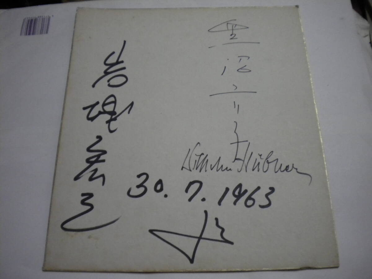- 岩城宏之 黒沼ユリ子 外人1枚寄せ書き直筆サイン色紙 1963年7月30日