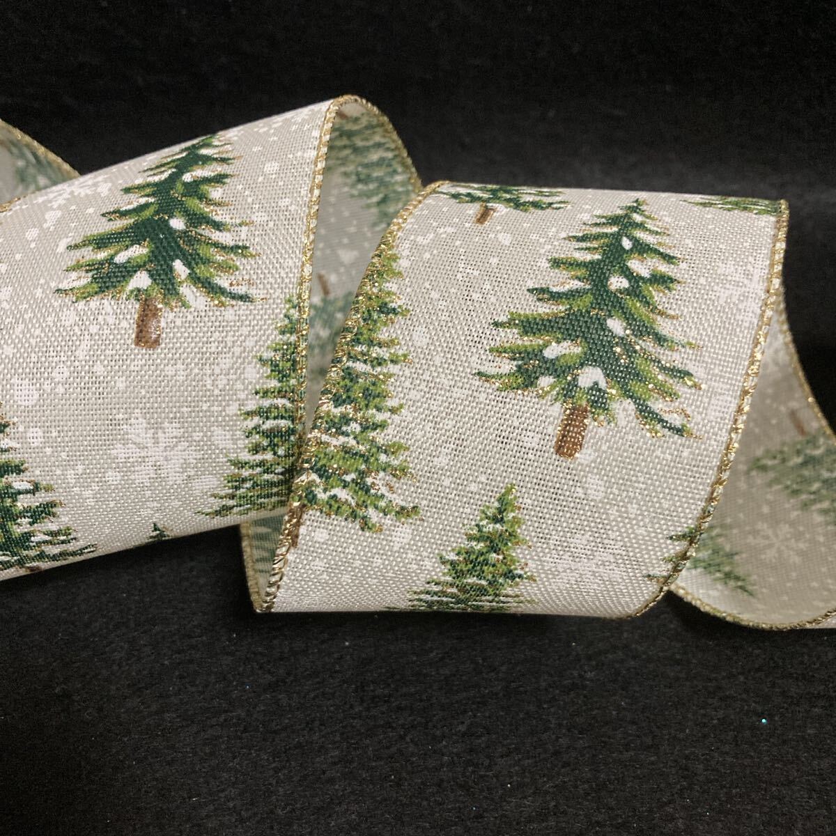- リボン切り売り 1.5m 約6.3cm幅 クリスマスリボン 雪降るもみの木 白 ホワイトリボン
