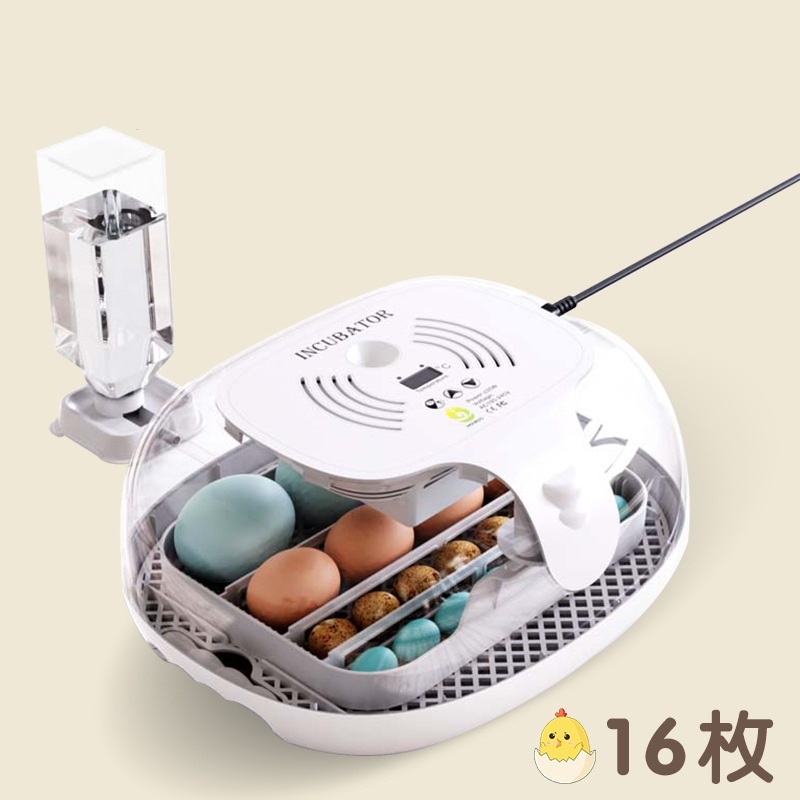 - 自動孵卵器 インキュベーター 検卵ライト付き 孵化器 自動転卵式 16個入卵 大容量 デジタル表示 自動温度制 湿度保持 子供教育用 家庭用
