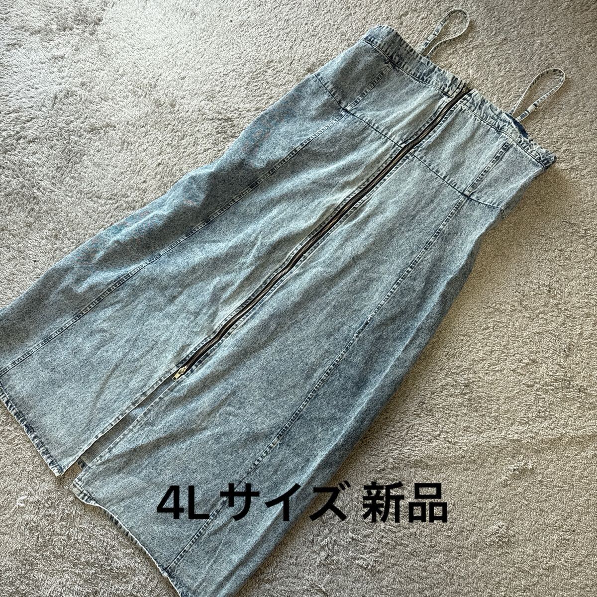 - 大きいサイズ フロントジップブルーウォッシュデニムロングワンピース4L★ゆうパケット配送可能★新品32
