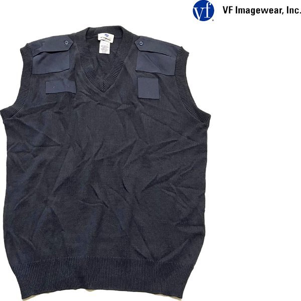 - 1点物◆VF紺エポレット肩章ニットベスト中古ジレ古着メンズXXLレディースOKアメカジ90sストリートスポーツ制服ジャケット無地Vネック362173