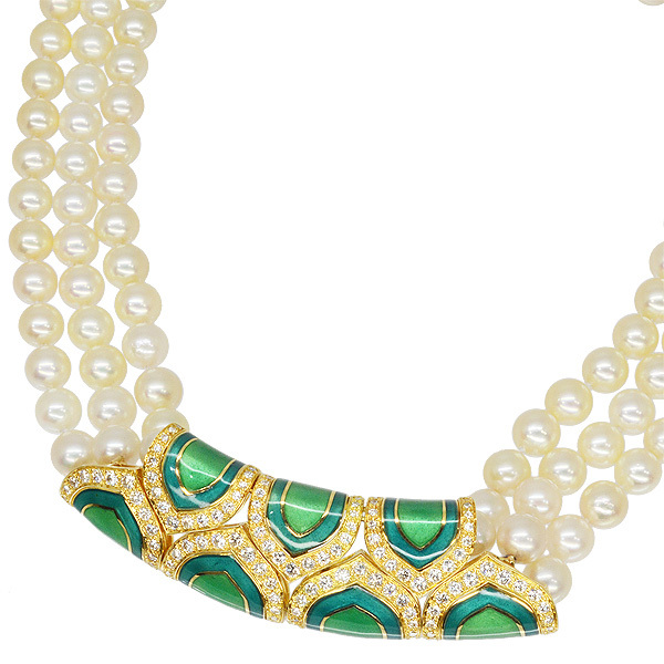 - メーカー磨き済み♪ブシュロン パール エナメル ダイヤ ネックレス K18YG A+♪送料無料・返品可.