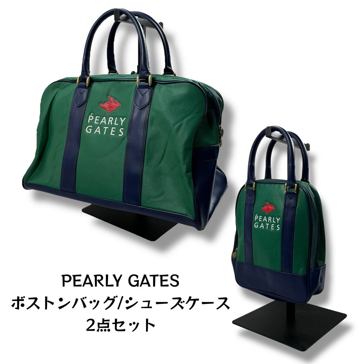 - (TK1014)【2点セット】 PEARLYGATES パーリーゲイツ ボストンバッグ シューズケース まとめ売り グリーン ゴルフ レジャー 男女兼用