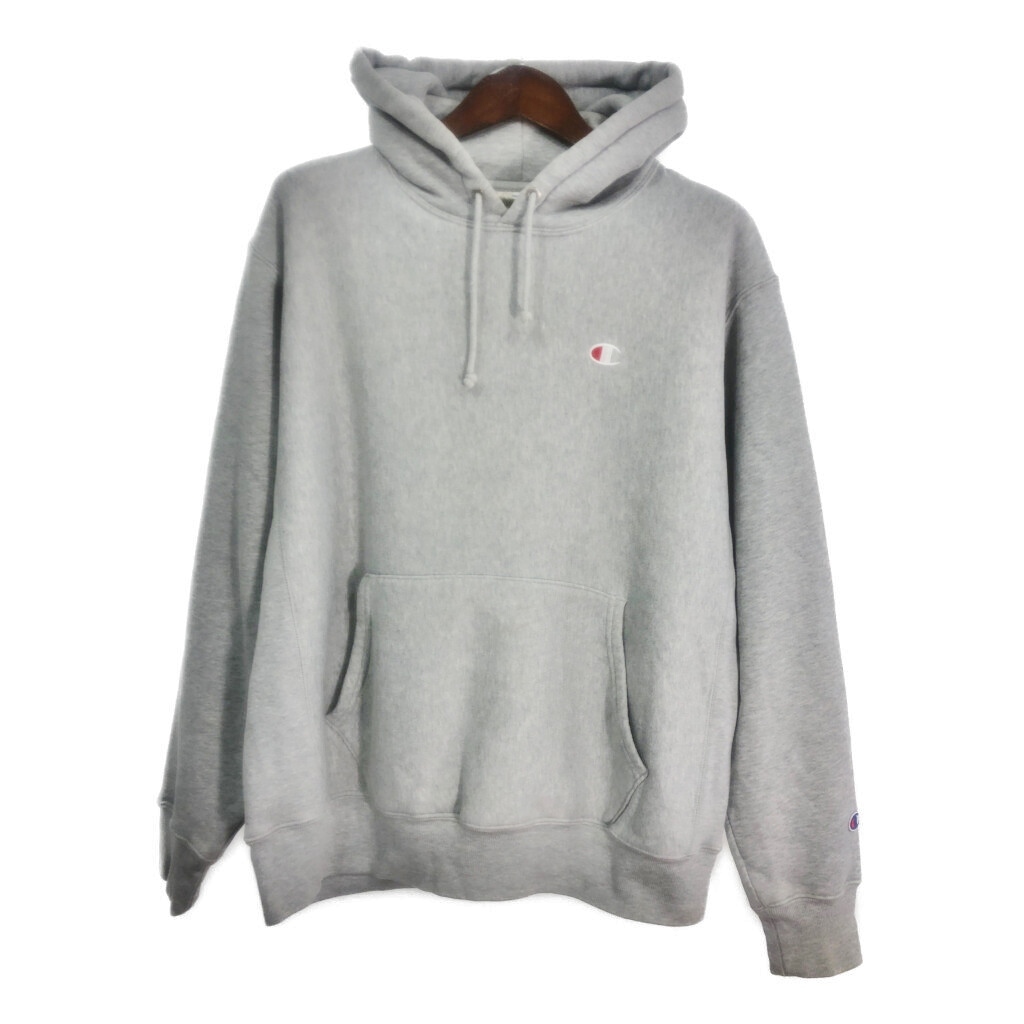 > Champion チャンピオン REVERSE WEAVE リバースウィーブ スウェット パーカー ワンポイントロゴ グレー (メンズ L) S2393 1円スタート