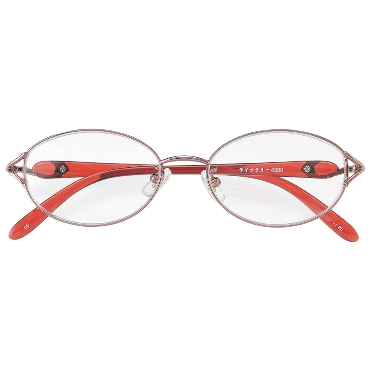 - メイガン 老眼鏡 中間度数 強度数あり 女性 レディース 掛け心地良い プラ テンプル 疲れにくい 非球面レンズ採用 レッド 度数 3.50 4